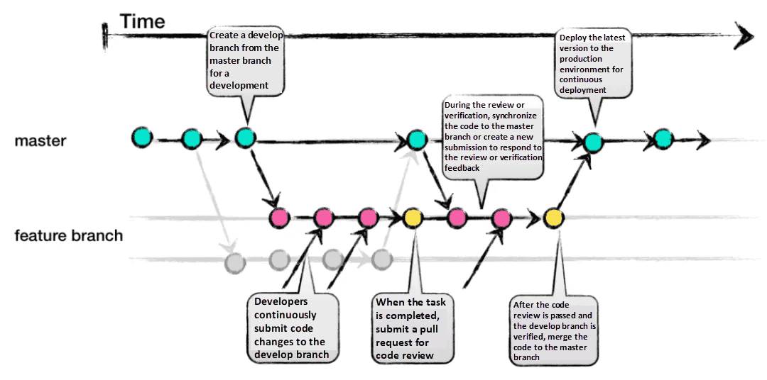 Master ----●───────────────●───────────●──▶ (배포 완료)